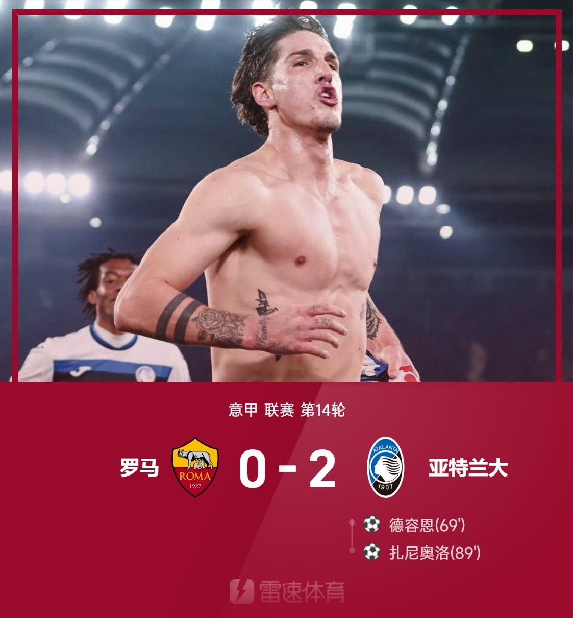 德容恩远射破僵,扎尼奥洛弑旧主,亚特兰大2-0客胜罗马>>>