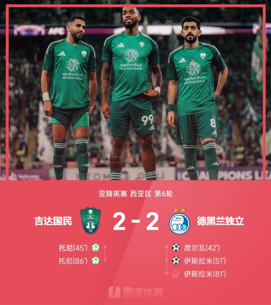 托尼点射双响,布赖坎绝杀被吹,吉达国民2-2德黑兰独立>>>
