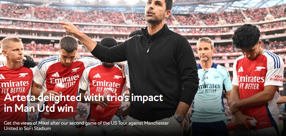 7月28日,在两家具乐部的一场友谊赛中,阿森纳2-1击败曼联。赛后,谈到锁定胜局的马蒂内利,阿尔特塔表示,“这就是球队和个人的心态。经过一堂训练,他走上球场,做...