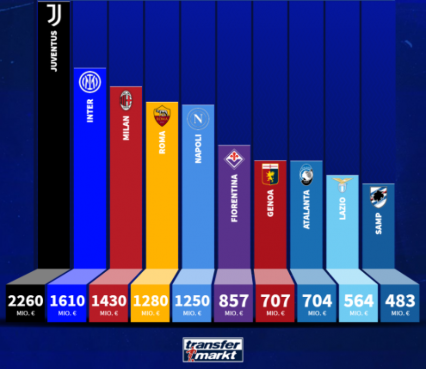 欧洲媒体《转会市场》发布了题为《近20年意甲内部交易》的报道,指出从2004年至今,同联赛中在内部引援上花费最多的意甲球队就是尤文图斯,和《尤文图斯-佛...